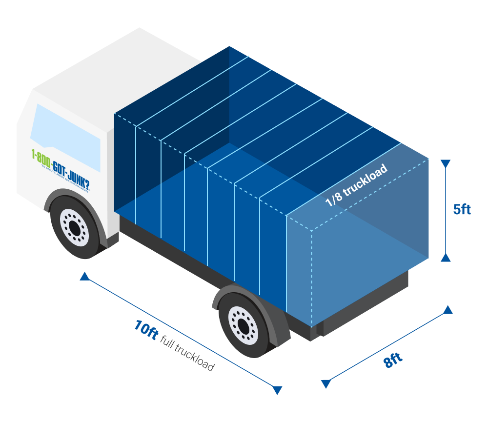 Our junk removal pricing is based on how much space your items takes up in the truck and we charge in 1/8th increments. To give you an accurate price, we offer free, onsite estimates. When we arrive, we’ll take a look at your items and give you an all-inclusive price. There’s no obligation, so you can say no at any time.
