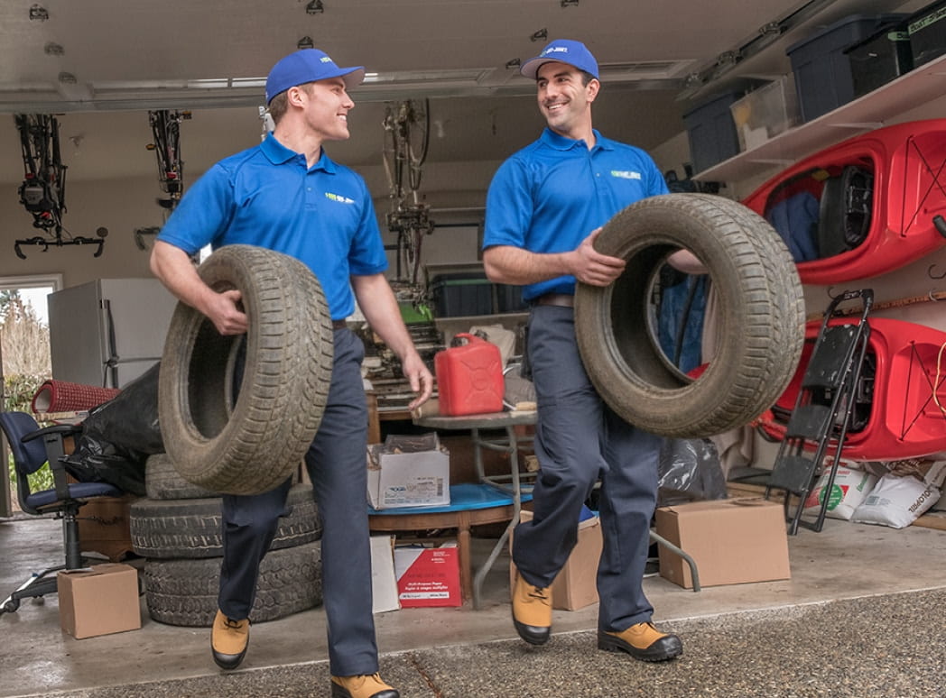 Most regular waste services won't accept old tires, leaving them to pile up in garages or yards. 1-800-GOT-JUNK? provides a convenient, responsible solution for tire disposal. Our professional teams handle all the heavy lifting and loading from anywhere on your property. Whether you have one tire or a bulk load, we offer same-day service and free, no-obligation onsite estimates to make your junk disappear instantly.