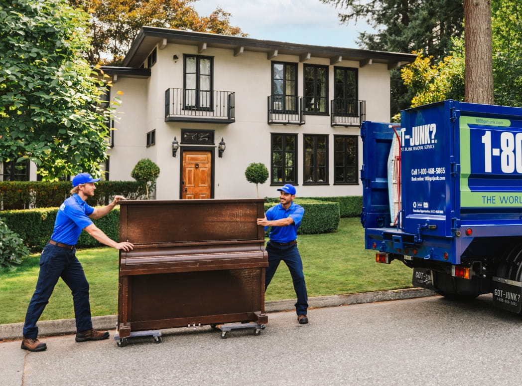 1-800-GOT-JUNK? élimine la paperasse. On fournit une solution de rechange complète et rapide, où une équipe de deux professionnels s’occupe de tout soulever immédiatement. On propose une soumission sur place sans obligation, en s’assurant que votre piano disparaît au moment voulu. Qu’on trouve une façon de réutiliser les matériaux ou d’en assurer l’élimination responsable. On s’occupe de tout.